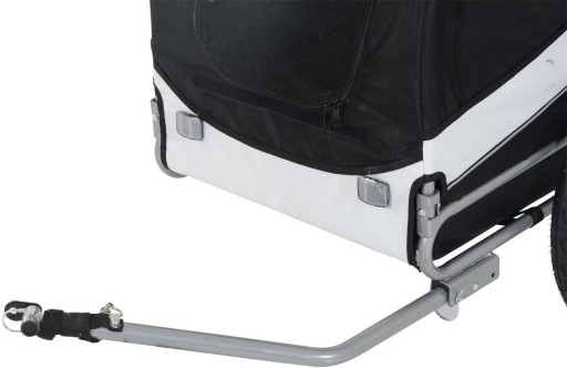 Wysokiej jakości przyczepa rowerowa dla psa posiada uniwersalny zaczep, który pasuje do każdego roweru. Koła można łatwo zdemontować i tym samym zaoszczędzić miejsca podczas przechowywania. Przyczepa jest dostosowana do rowerów o wielkości do 26 cali. Ramy wykonane są ze stali a sama naczepa z tkaniny Oxford 600D, co zapewnia ochronę przed deszczem. Przednie i tylne wejście można otworzyć za pomocą zamka. Dyszel i części boczne są składane. Przyczepa jest wyposażona w siatki do bezpiecznej podróży oraz przewiewu. Wbudowane haki pozwalają na przymocowanie smyczy. Podróżując po ulicach prosimy o wyposażenie przyczepy w dodatkowe światło tylne.