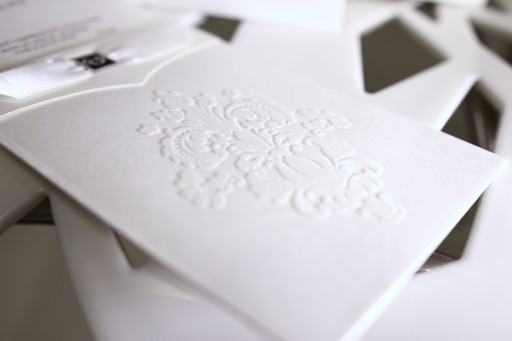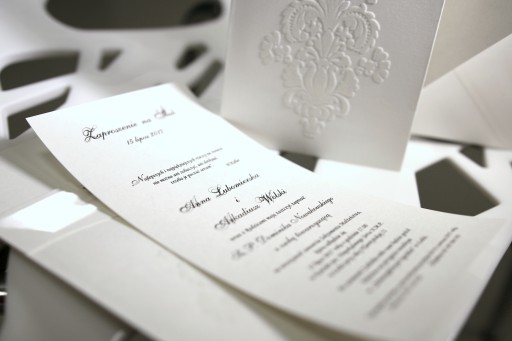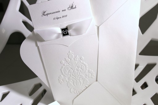 - BIAŁY WELUROWY ORNAMENT NA PRZODZIE ZAPROSZENIA