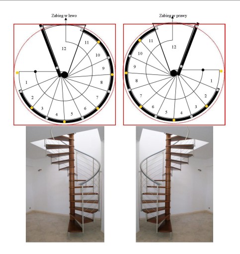 Zabieg schodów: lewoskrętny lub prawoskrętny patrząc od pierwszego stopnia