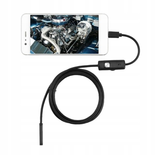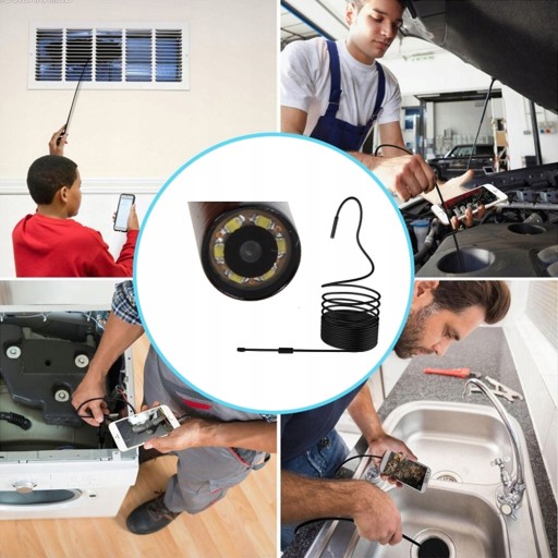 Kamera zamontowana jest na długim giętkim przewodzie. Dzięki czemu możemy dotrzeć do różnych trudno dostępnych miejsc.