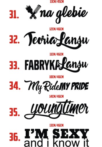 - Przed zakupem proszę się upewnić czy wymiar oferowany w aukcji będzie dla Państwa odpowiedni, naklejki są wykonywane dopiero po zamówieniu i podaniu pełnych informacji.
