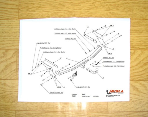 - 1. Hak holowniczy z odkręcaną kulą, Zestaw montażowy: śruby, tulejki, podkładki, nakrętki, Osłona kuli (kapturek), Tabliczka znamionowa z numerem homologacji E20/e20 (konieczna na przeglądzie, dzięki tej tabliczce bez problemu zarejestrujesz hak). Szczegółowa obrazkowa i słowna instrukcja montażu, Karta gwarancyjna
