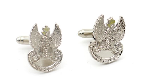 - 2 szt. spinek do mankietów tłoczone, emaliowane (żółta korona)