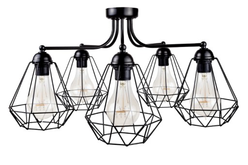 Prezentujemy Państwu plafonierę sufitową DIAMENT-4 z pięcioma punktami świetlnymi. Abażury widoczne na zdjęciach to drut metalowy. Najnowsza kolekcja lamp loft.