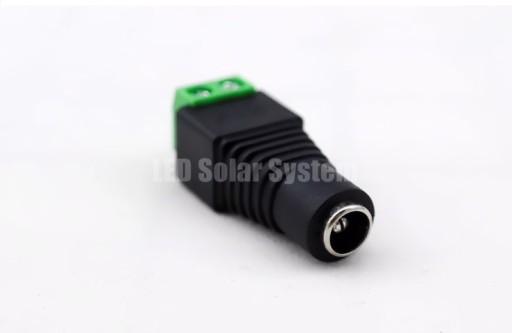 Podstawowe parametry: gniazdo DC 2.1/5.5 - kompatybilne z akcesoriami LED, bez przewodu, oznaczony plus, do 50V, dopuszczalna temperatura pracy do 70'C, śruby do montażu przewodu.