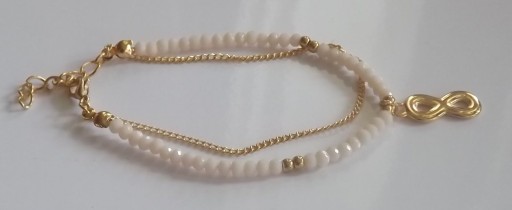 bransoletka młodzieżowa ; nieskończoność w kolorze białym i złotym .