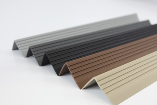 Zastosowanie: wysokiej jakości profil PCV do stosowania na schodach i biegach komunikacyjnych, do stopnic zakończonych na „okrągło”