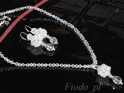 Bardzo piękny delikatny komplet z kuleczką wykończoną kryształową kropelką.
