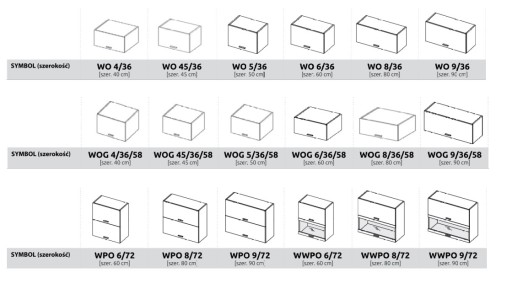 - szafka wisząca o szerokości 80 cm, wysokości 36 cm, głębokości 58 cm - 2 szt