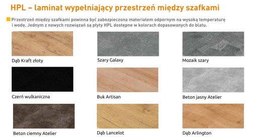 W skład prezentowanego zestawu nie został wliczony blat, panele boczne na słupki oraz płyta HPL