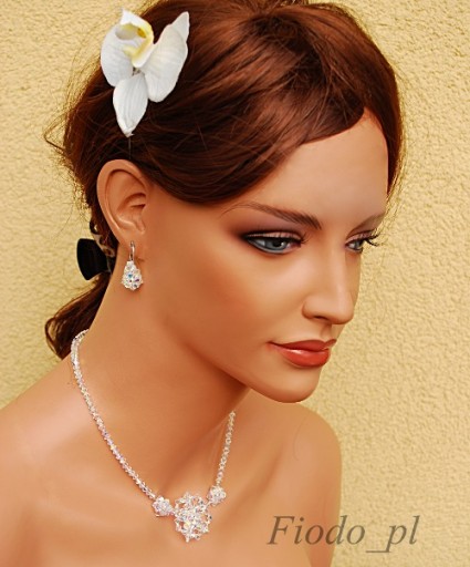 Bardzo piękny delikatny komplet z wisiorkiem przypominającym kwiat.