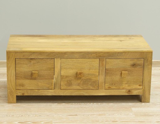 Stolik indyjski z sześcioma szufladami, wykonany z litego drewna egzotycznego mango.
