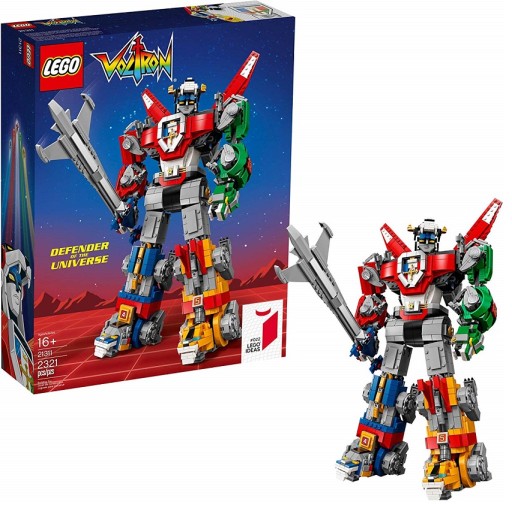 Czas obronić wszechświat przed niebezpieczeństwem z zestawem LEGO® Ideas 21311 Voltron — największym jak do tej pory robotem zbudowanym z LEGO. Ten wspaniały zestaw zawiera ruchome lwy do zbudowania: czarnego, niebieskiego, żółtego, czerwonego i zielonego. Figurki mają specjalnie zaprojektowane, supersilne złącza, dzięki którym można połączyć je w potężnego robota Voltrona. W komplecie jest też ogromny miecz i tarcza, które doskonale pasują do dłoni Voltrona. Model jest świetnym dodatkiem do każdej ekspozycji lub wspaniałą okazją do odtworzenia emocjonujących scen walki z oryginalnego serialu telewizyjnego z lat 80. XX wieku oraz nowego serialu wytwórni DreamWorks „Voltron: Legendarny obrońca”.
