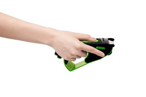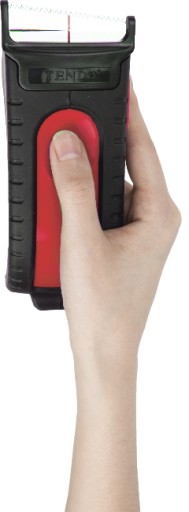 Funkcja stopera pozwala na kontrolowany wysuw taśmy za pomocą siły nacisku dłoni. Wygodna, pokryta warstwą gumy przesuwana rączka umożliwia komfortowy uchwyt zarówno dla prawo- jak i leworęcznych redukując zmęczenie nadgarstka do minimum!