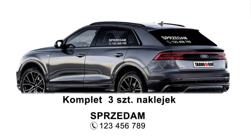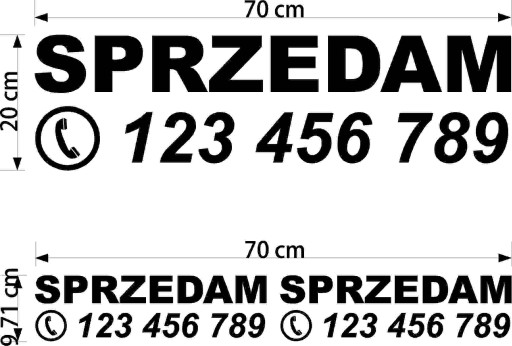 - Przedmiotem aukcji jest komplet 3 szt. samoprzylepnych naklejek z ogłoszeniem " Sprzedam, tel. xxx xxx xxx ".