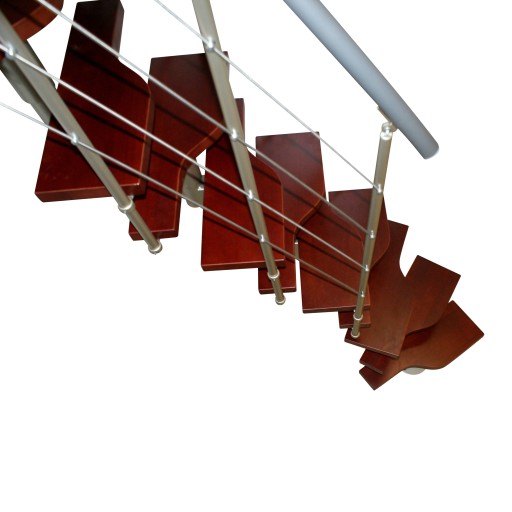Schody modułowe złożone z 13 elementów stanowiących 14 poziomów. Elementy wykonane zostały ze stali w kolorze satyna stalowy oraz litego drewna bukowego. Wykończenie stopni w stanie surowym do własnej koncepcji. Zestaw przystosowany jest do samodzielnego montażu.