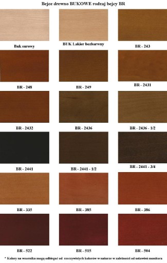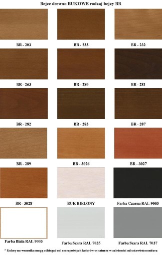 - Kolor drewna: barwa (zdjęcie poglądowe na buku BR-386) inne kolory do wyboru z palety kolorów poniżej w cenie schodów