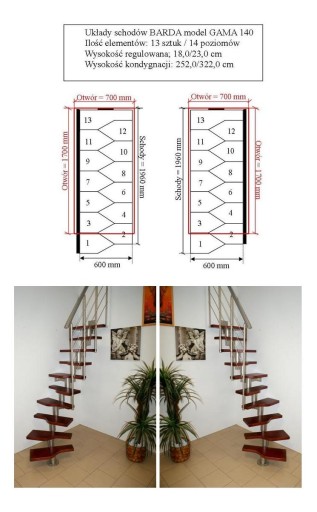 - Ilość elementów: 13 szt. stopni / 14 wysokości