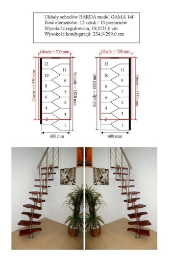 - Ilość elementów: 12 szt. stopni / 13 wysokości