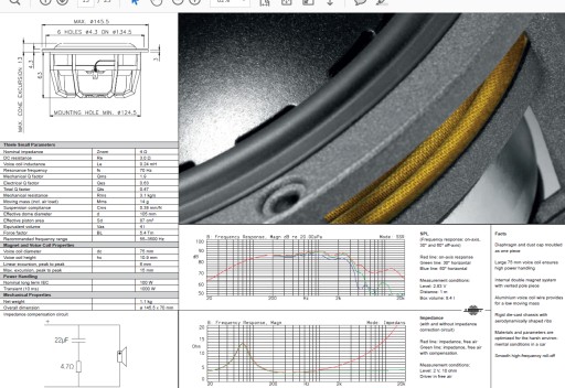 MW 152 charakteryzuje się doskonałą liniowością charakterystyki przetwarzania, zarówno w osi głównej jak i pod większymi kątami, a także niesamowicie niskim poziomem zniekształceń. Dzięki tym cechom głośnik zapewnia doskonałą reprodukcję średnich tonów, idealną do samochodowych systemów wyższej klasy.