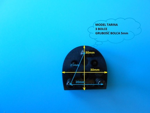 - Rozstaw od środka do środka któregoś z dolnych bolczyków do bolczyka oddalonego po długosci fleka w tym przypadku 21 mm