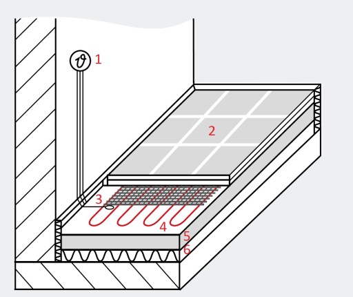 - ogrzewanie akumulacyjne - matę grzewczą należy umieścić w wylewkę lub pod wylewkę (maksymalna grubość 3-4 cm)