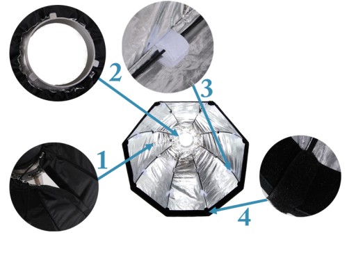 Konstrukcja softbox'u składa się z 8 drutów, co sprawia, że jest on głęboki i paraboliczny.
