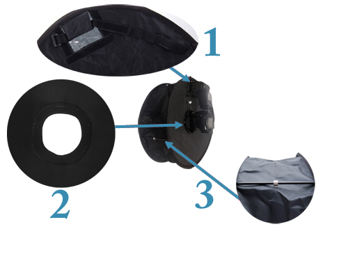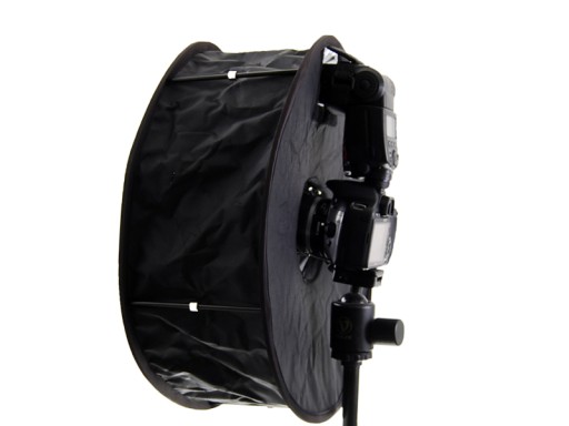 Dyfuzor SOFTBOX montujemy na lampie błyskowej za pomocą specjalnych rzepów, natomiast obiektyw jest zabezpieczony za pomocą elastycznej gumki. Niebywałą zaletą jest szybkość oraz prostota rozkładania i składania softboxa.