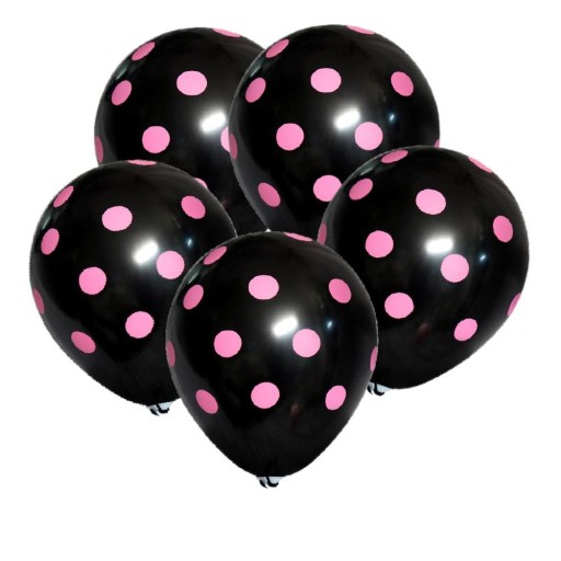Balony w Kropki w kolorze Pastel Black, z różowym, pięciostronnym nadrukiem. Balony doskonała dekoracja na wieczór panieński.
