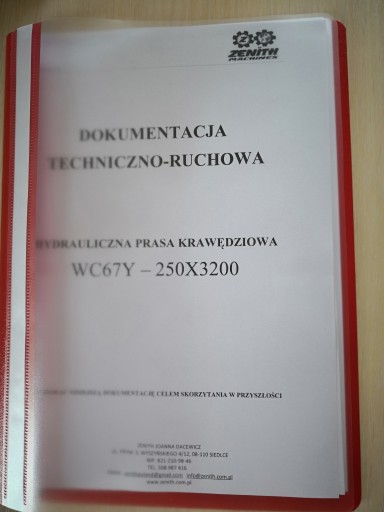 Oferuję DTR - instrukcję obsługi do PRASY KRAWĘDZIOWEJ 250 X 3200.