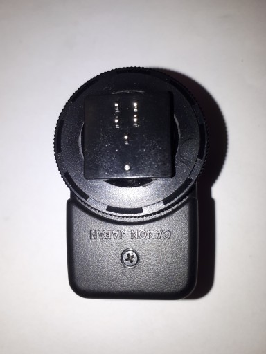 Adapter jest wyposażony w sanki do instalacji lampy Speedlite oraz gniazdko przewodu synchronizacyjnego (np. Canon Connecting Cord 60 lub 300).