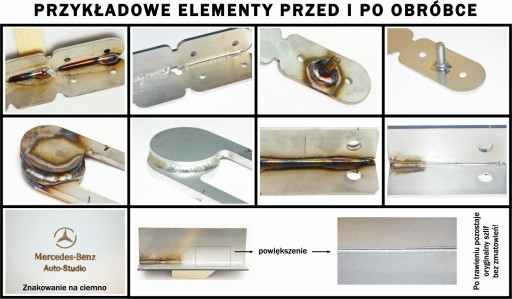 Trawienie spawów odbywa się za pomocą pędzla o zmiennej długości włosia. Dzięki zastosowaniu pędzla przebarwienia można usunąć bez problemu z powierzchni płaskich, kantów, pachwin i trudno dostępnych miejsc (ostre kąty, wąskie szczeliny). Długość robocza włosia pędzla to aż 4,5 cm (poprawnie użytkowany pędzel wolno się zużywa i starcza na długo).