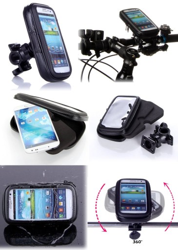 Pokrowiec zapewnia stały podgląd ekranu, a także zabezpiecza urządzenia przed wilgocią. Montaż bez jakichkolwiek narzędzi, głowica kulowa 360 stopni. Skręcane mocowanie uchwytu pewnie trzyma się na kierownicy. Futerał wodoodporny z powłoką dotykową