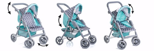 Regulowane oparcie pozwala na przewożenie laleczki w pozycji siedzącej lub gdy będzie już zmęczona długim spacerem, oparcie można rozłożyć do pozycji leżącej.