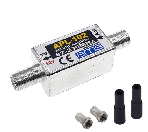Wzmacniacz APL-102 przeznaczony jest do wzmacniania słabych sygnałów FM oraz VHF (Mux-8, DAB+). Zasilany napięciem 12 V DC.