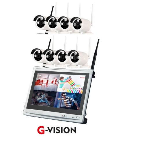 BEZPRZEWODOWY MONITORING 8 KAMER WIFI + MONITOR LCD, pełniący funkcję nagrywarki