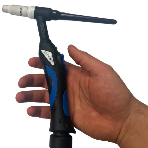 Uchwyt spawalniczy SPARTUS TIG z przyłączem ŁW 35-50 pasuje do większości urządzeń spawalniczych dostępnych na rynku. Jest kompletnie uzbrojony i gotowy do pracy. Ergonomiczna rękojeść z precyzyjnym przyciskiem zapewnia wysoki komfort pracy. Uchwyt posiada wysokiej jakości osłonę gumową, zabezpieczającą przewody przed przetarciem.