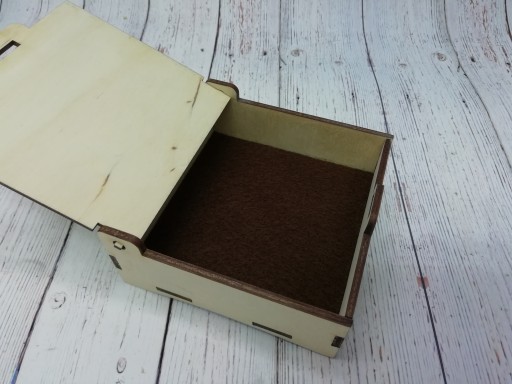 pudełko jest oczyszczone, usługa ma na celu usunięcie przypalonych miejsc powstałych w wyniku cięcia i grawerowania laserem. Pozostają jedynie brązowe brzegi powstałe w wyniku cięcia laserem.