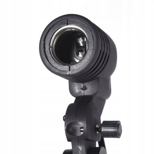 Dzięki tej oprawce połączymy szybko i solidnie lampę błyskową (żarówkową) wraz z parasolką i statywem oświetleniowym otrzymując w ten sposób kompletny element studia fotograficznego. Sprawdza się również jako oprawka do świetlówek światła stałego.