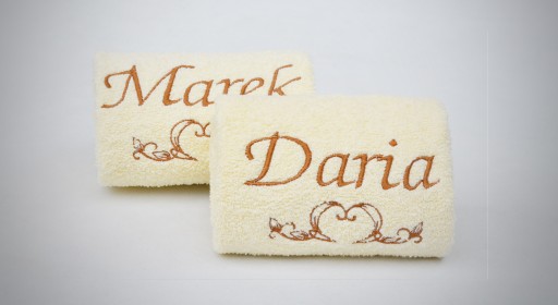 - treści haftu na ręcznikach - jeśli zamawiasz je dodatkowo.
