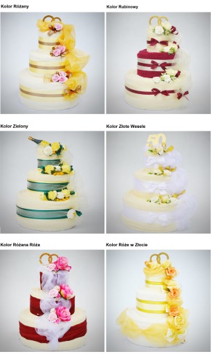 - kolorze dekorowania tortu (Gold, Szampański, Miłosny, itd.),