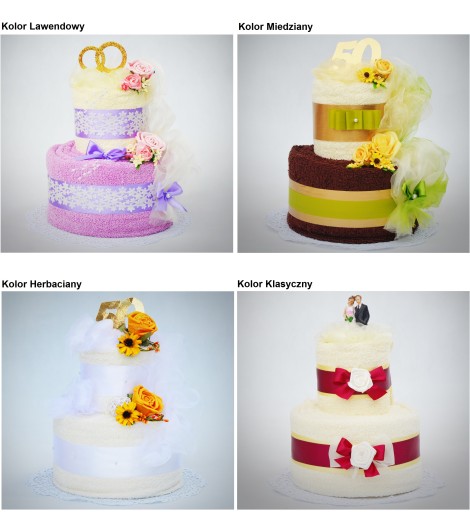 Zapraszamy do zakupu oryginalnego i eleganckiego prezentu jakim jest tort z ręczników. To doskonały prezent na ślub, rocznicę ślubu, urodziny, podziękowania dla rodziców. Doskonały, jako dodatek do "koperty" i prezent zamiast kwiatów. Tort z ręczników jest tak piękny jak bukiet, ale będzie cieszył oko dłużej. To bardzo ładny i równocześnie praktyczny prezent. Po jego rozwinięciu obdarowani będą się cieszyć miękkimi, grubymi i chłonnymi ręcznikami.