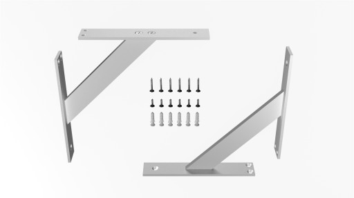 Każdy wspornik montowany jest za pomocą 3 wkrętów oraz kołków montażowych do ściany. Wkręty do ściany oraz półki, kołki i instrukcja znajdują się w zestawie. Produkt można zamontować w domowych warunkach za pomocą wiertarki i śrubokręta.