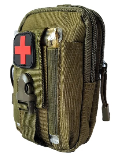 Polecamy bardzo wysokiej jakości profesjonalną i modną - taktyczną, wojskową, turystyczna lub do pracy APTECZKĘ z wyposażeniem - SASZETKĘ - wykonana z bardzo wytrzymałego materiału - gumowana od środka.