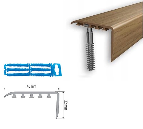 Kątowniki progowe wykonane są z PVC pokrytego bardzo trwałym laminatem o dużym stopniu odporności na ścieranie. Umożliwiają estetyczne połączenie różnego rodzaju powierzchni podłogowych. Kątownik posiada podwójny system montażu oparty na kołku montażowym i kleju polimerowym. Kołek stabilizuje kątownik do podłoża, zaś klej chroni przed zachodzeniem brudu i wilgoci.