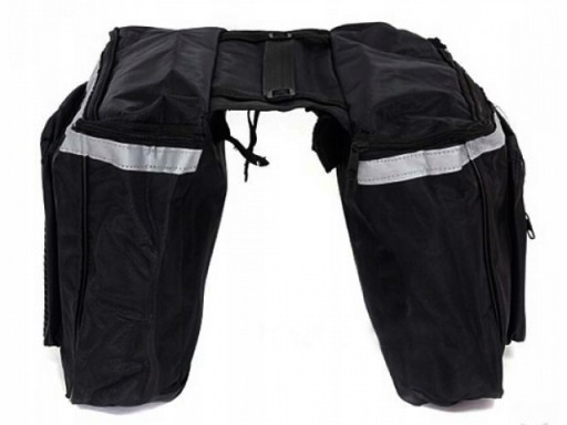 Z tyłu sakwy znajduje się odblaskowa taśma zwiększająca bezpieczeństwo jazdy.