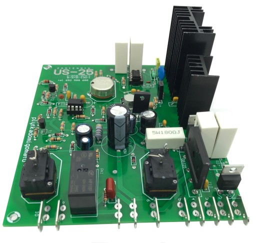 Najistotniejszą zmianą jest nowatorski system sterowania napędem - swego rodzaju "hybryda" :) - w pierwszych wersjach płyty US-25 posiadały jako element wykonawczy (sterowanie napędem silnika i jego hamowaniem) - tranzystory bipolarne (mówiąc w uproszczeniu - starego typu tranzystory, wrażliwe na przeciążenia, bardziej się grzejące pod obciążeniem - dlatego płyta miała duży radiator, ale z kolei były odporne na przepięcia w sieci, skoki napięcia itp.). Później stosowano w nich tranzystory MOSFET (zarówno w układzie hamulca jak i napędowym). Tranzystory mosfet - w uproszczeniu mówiąc - są znacznie nowocześniejsze - zdecydowanie mniej się nagrzewają (w tego typu zastosowaniu) zapewniają zdecydowanie lepszy moment obrotowy dla silnika (jest mocniejszy) - i są znacznie mniej wrażliwe na przeciążenie - ale mają też wadę - są wrażliwe na przepięcia, skoki napięcia czy różnego rodzaju zakłócenia elektryczne w okolicy jakiej pracują. Dlatego też w niesprzyjających warunkach - w takim zestawie dwóch MOSFETów gdzie jeden odpowiada za napęd a drugi za hamowanie - może zdażyć się - że podczas pracy silnika - przypadkowo - w wyniku zakłóceń sieciowych - na krótką chwilę załączy się tranzystor hamujący - powoduje to zwarcie (układ jednocześnie chce napędzać silnik i go zatrzymać) - i jest to najczęstszą przyczyną uszkodzeń tej płyty.
