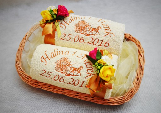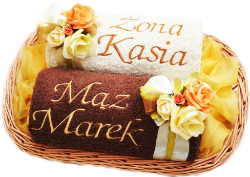 - hafty na 2 ręcznikach - wykonamy Twój haft złożony z 5-6 wyrazów lub 3-4 wyrazów i grafiki.