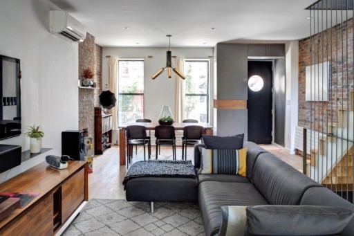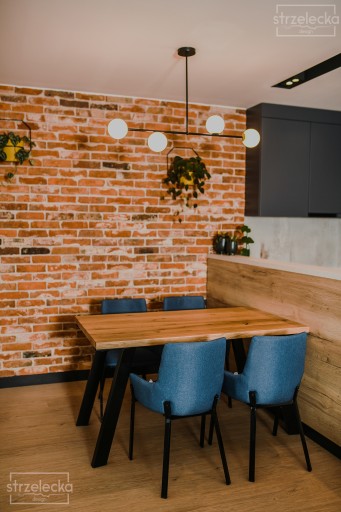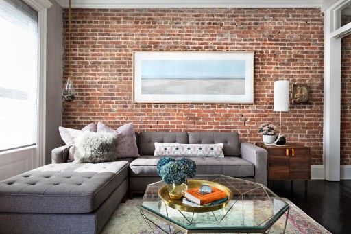 Salon, w którym Lica Ciętej Cegły dodają niezwykłego uroku