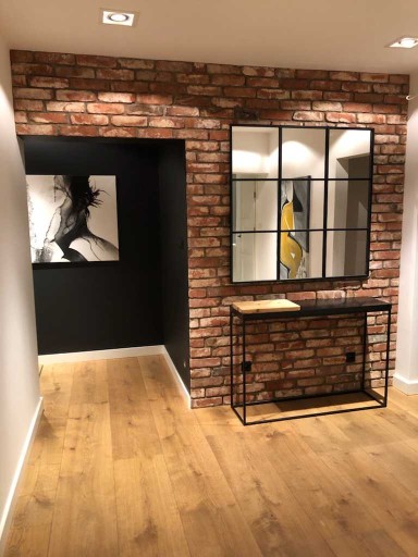Cegła Cięta . Montaż naszych płytek z cegły jest prosty i nie trzeba być fachowcem by ułożyć je na ścianie. W jednym metrze kwadratowym mieści się 50 sztuk. Odstęp zachowany na fugę to 1 cm.